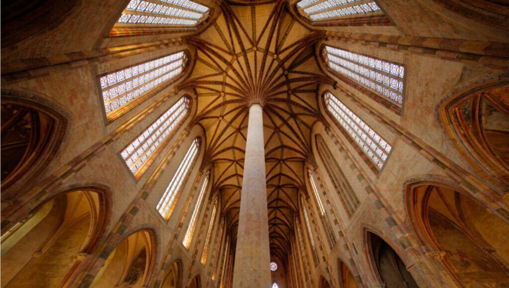 La « ville rose », surnom attribué à Toulouse en raison de la couleur des briques en terre crue, qui pavent les plus singuliers édifices de la ville. Ainsi en est-il du Couvent des Jacobins comportant un singulier « palmier », colonne de 28 mètres de haut sur laquelle retombent 28 nervures. Quelques mètres plus loin, l’hôtel d’Assézat, résidence d’un des plus riches marchands de pastels de la ville, est le siège de l’exceptionnelle collection d’art moderne rassemblée par Georges Bemberg.